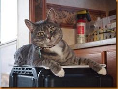 Since my ‘readers’ were telling me that they could find out more about my activities by reading other blogs, this has finally forced me to provide an update. It was great to see them all again, and to meet Pheebs for the first time. She is every bit as friendly and nice as I had anticipated. During the introduction process with Hailey, I put her on top of my truck where she could see and be seen without suffering the indignity of any doggy licks, and reduce the chance of any dogs losing a nose to a nasty claw swipe. All was going well, till little Cora saw the open door of my camper and decided to check for any stray dog treats inside. In a flash Hailey was off the truck and charged inside to defend her home against the invasion! I followed and intervened before any fur flew or blood was shed.