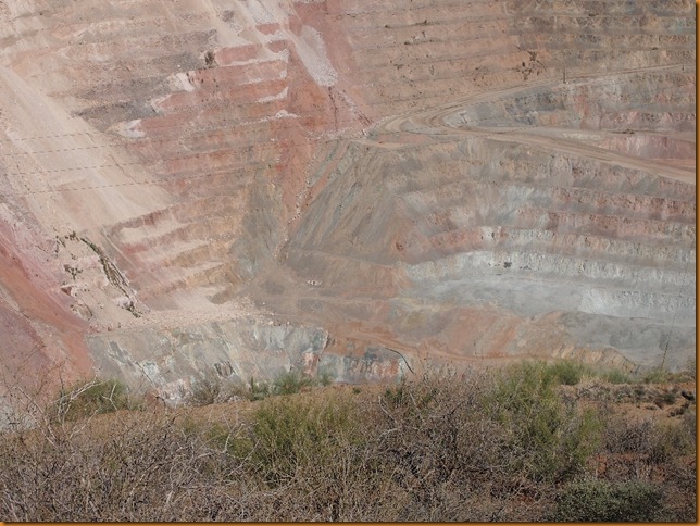 One thing that it is hard to miss in this part of Arizona are the many huge, open-pit mines. I have seen massive mine pits near Bisbee, Ajo, Superior, Miami, Globe, and other places that I have likely forgotten. Some of them, like Bisbee, and Ajo are largely abandoned, but there are still some going strong. One of these is near Kearny, and I could see bits of it from my camp on the hilltop about 10 miles away. So I drove over for a look one day.