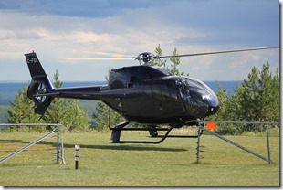 I forgot to get any photos on the road trip portion, but as usual we stopped by an airport to arrange the last leg of the trip. First time in this type of helicopter for both of us; and both of us got to sit in the front seat.